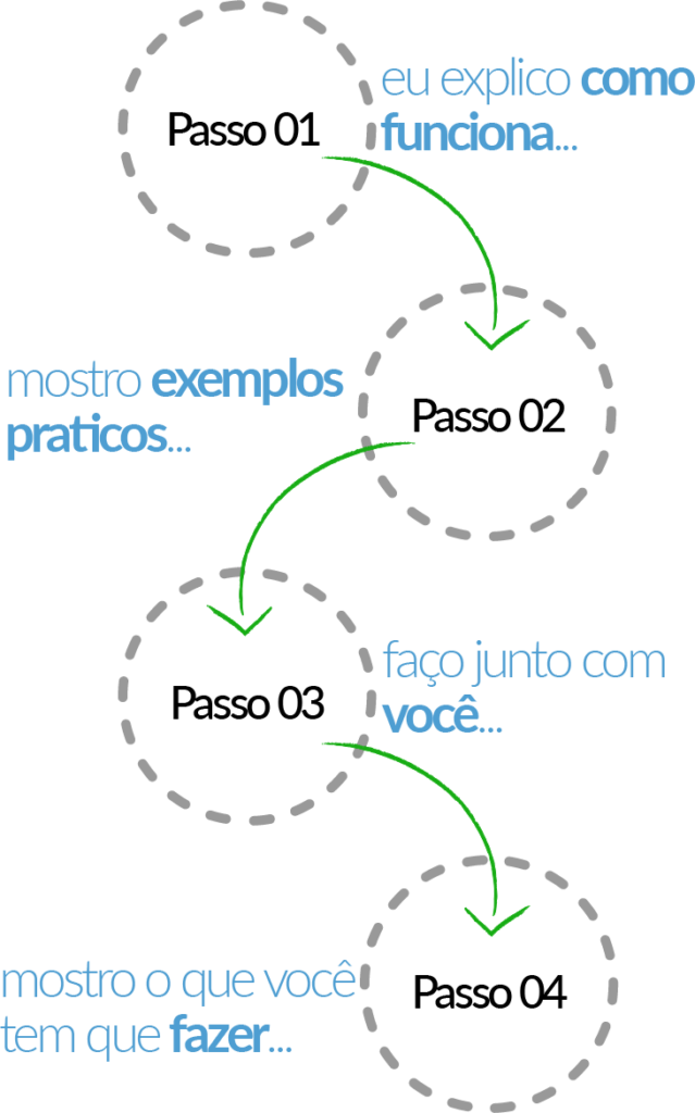 DIFERENCIAL EXTRA: Criei um passo a passo prático (aplicação 100% prática) totalmente em vídeo aulas curtas de todo o método apresentado, ou seja, um resumo de tudo o que você tem que fazer para ver os resultados.